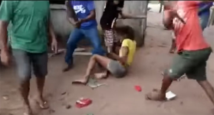 Grupo de cinco homens aparece em vídeo espancando travesti