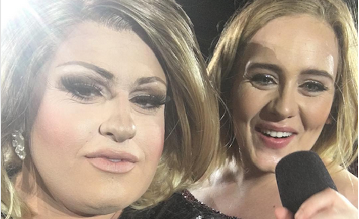 A cantora Adele surpreendeu seus fãs australianos ao chamar ao palco de seu mais recente show uma drag queen montada como ela para uma apresentação.
